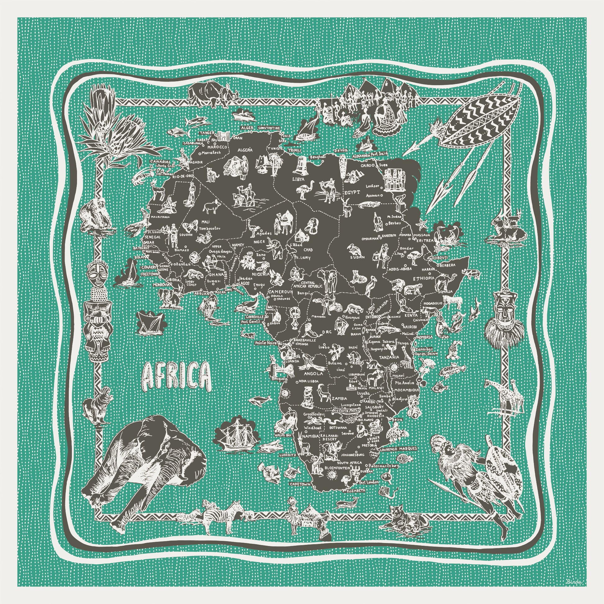 BBB2100Africa2 / Africa Map Big Scarf